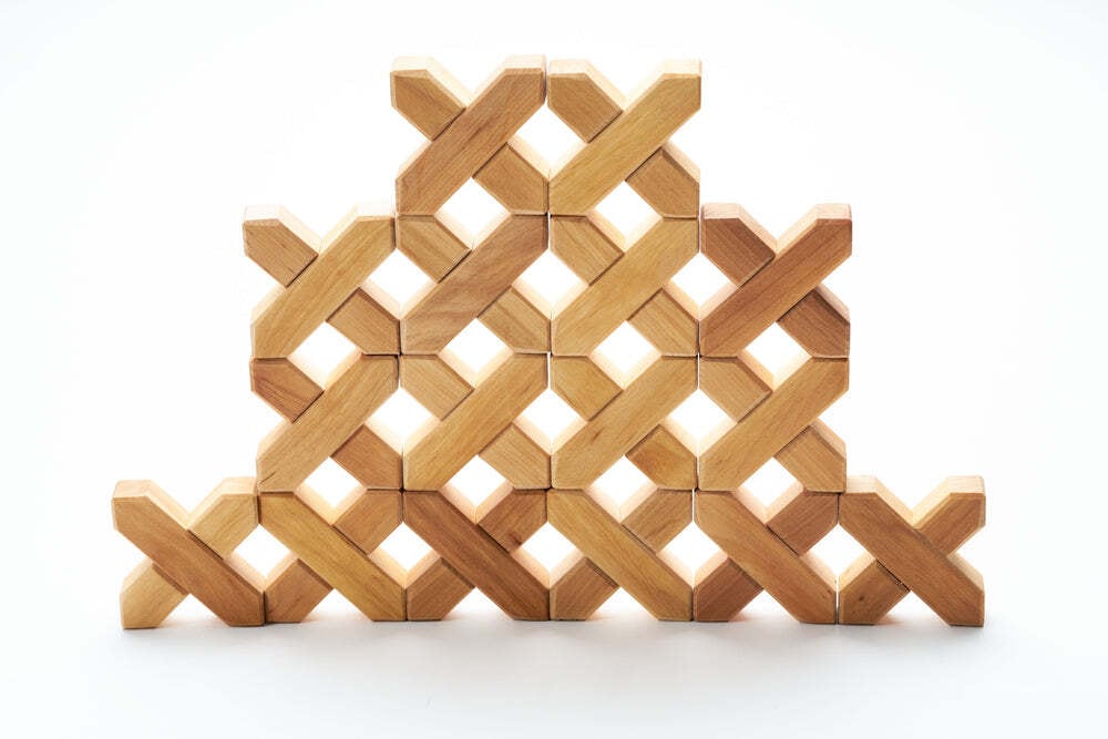 Xの形をした積み木で、ルーセントキューブや他のブロックを組み合わせて一緒に遊ぶことでより美しい建造物を作ることが出来ます。