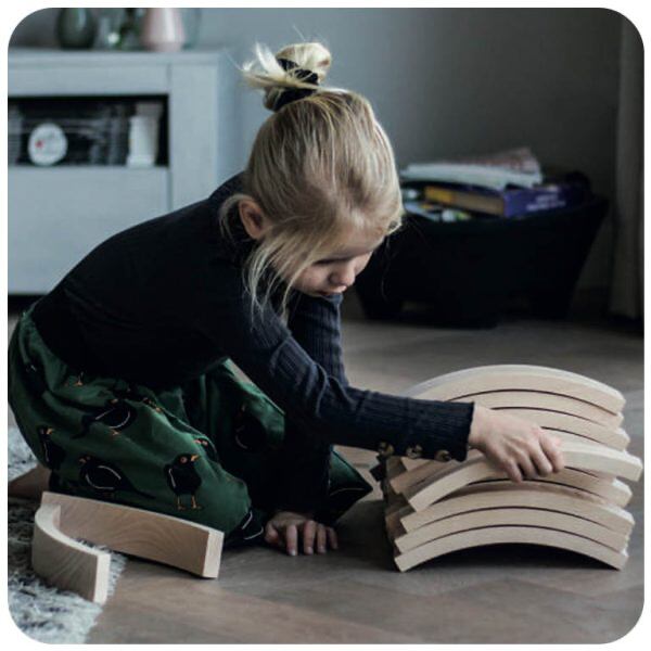 オランダのJelmer,Folko兄弟によってデザインされたabelブロックはFSCヨーロッパブナを素材として手作業で作られています。積み木は美しいカーブを描き、暖かみのある肌触り。自然な仕上がりは美しい木目を際立せます。