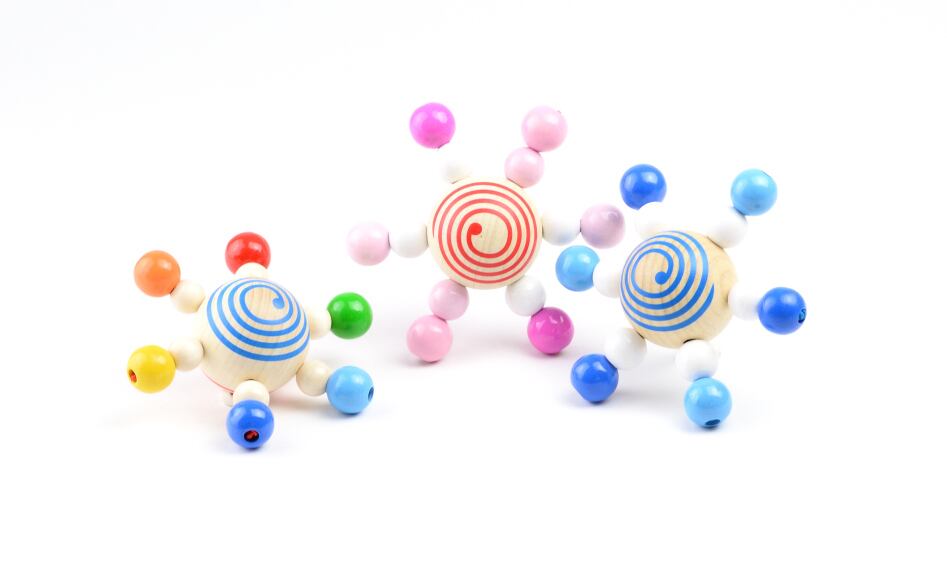 ちょっと触れるだけで、くるくる回りはじめるコマの形のラトル。